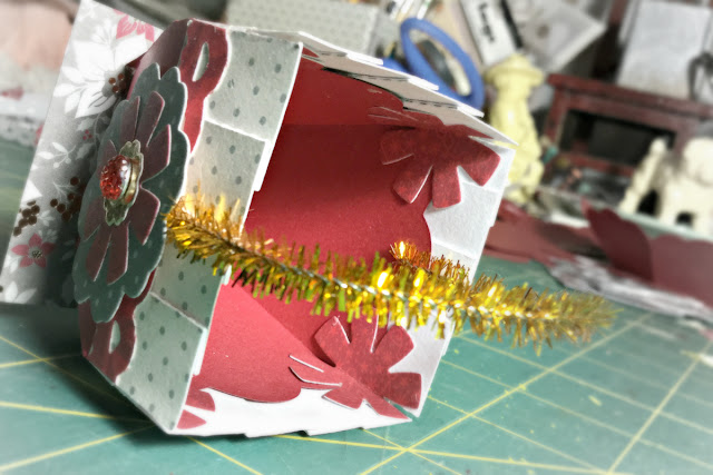 I used Eileen's Candy Cup Die with DCWV Cranberry Christmas Premium Stack to make holiday favors. I also used some decorative embellishments from the DCWV Gift Decor Paper Stack. I was really impressed with all of the foil accents included with the papers. I was also impressed that the papers were a good, heavy weight. I was able to easily construct the cups without using chipboard or cardboard and they held their shape nicely.